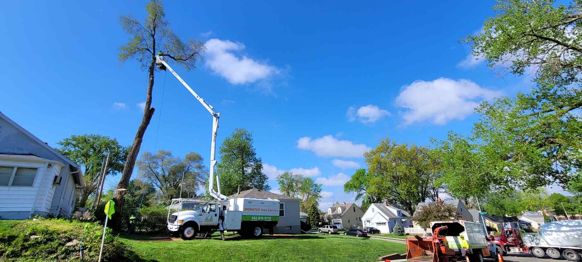 • Monster Tree Service in action trimming a tree