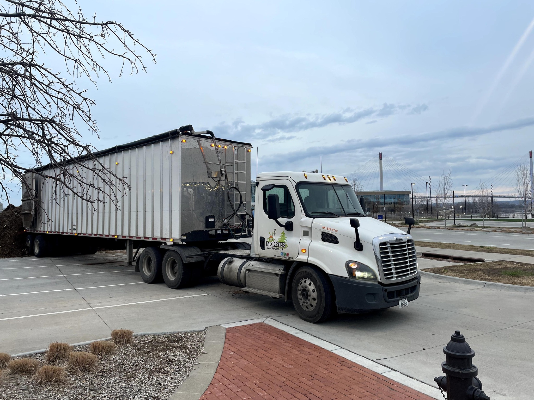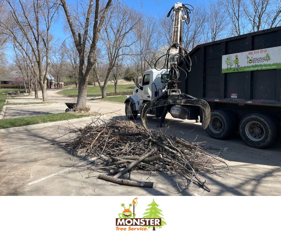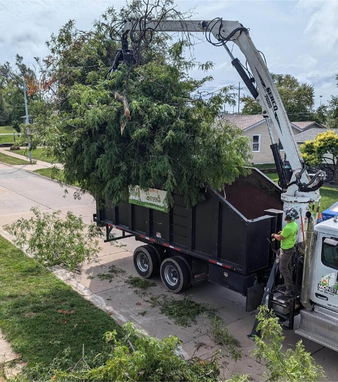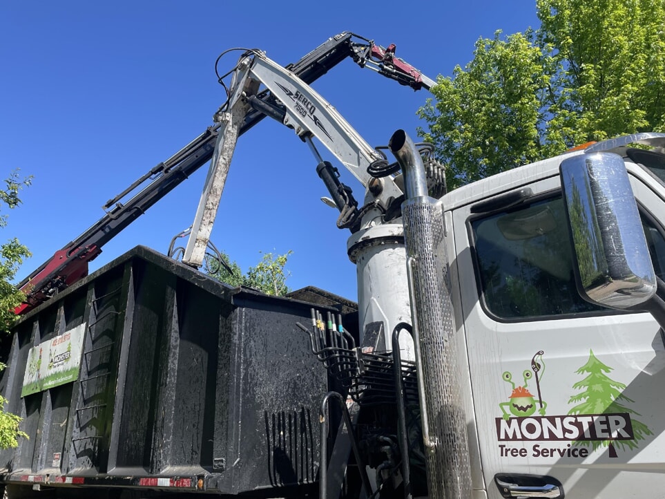 • Monster Tree Service truck unloading tree branches