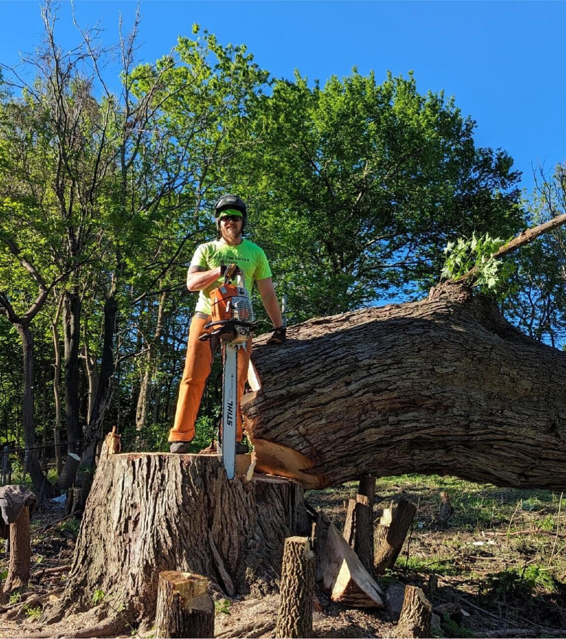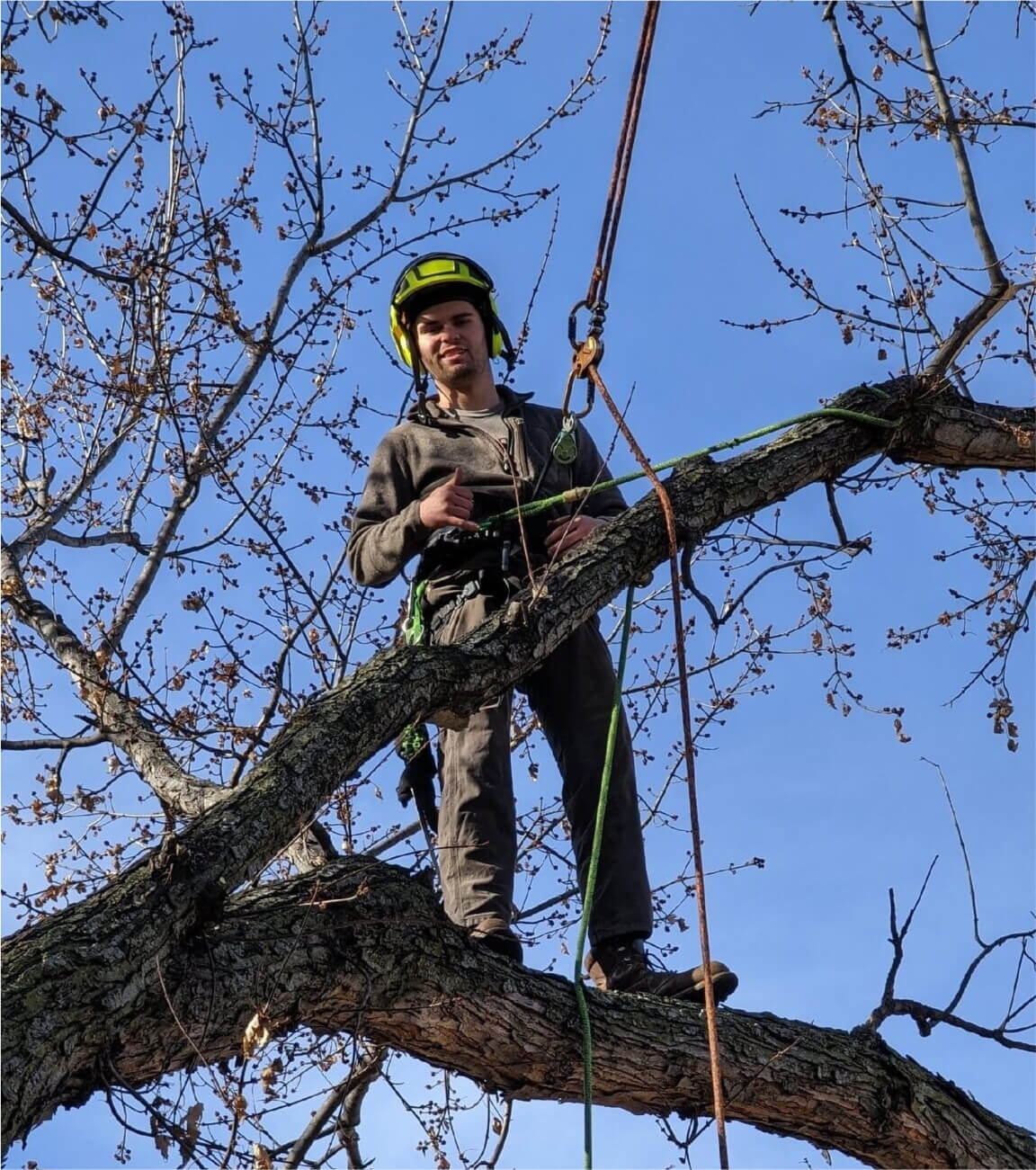 • arborist standing on a huge tree branch