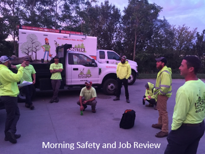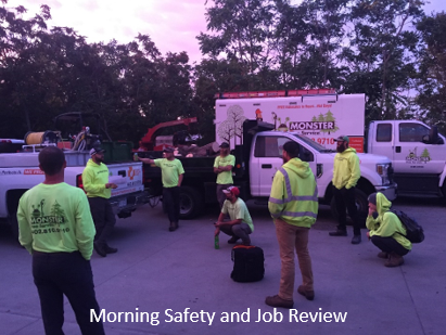 • Monster Tree Service employees smiling on site