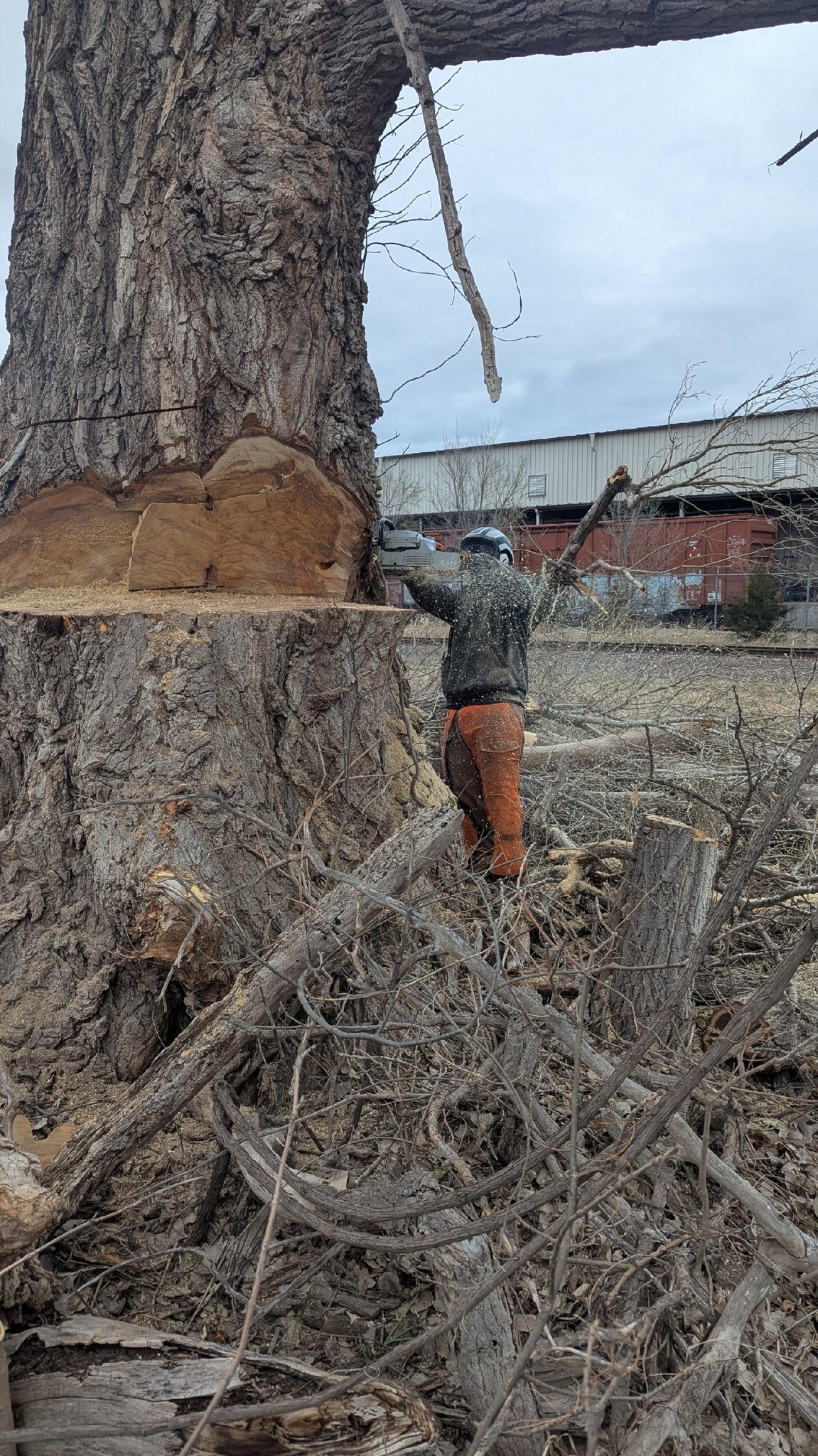 • top down view of cutting down tree