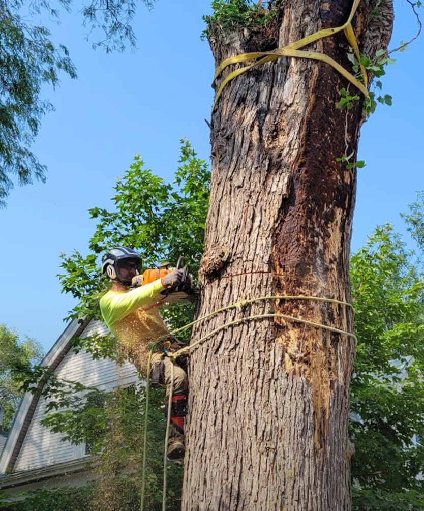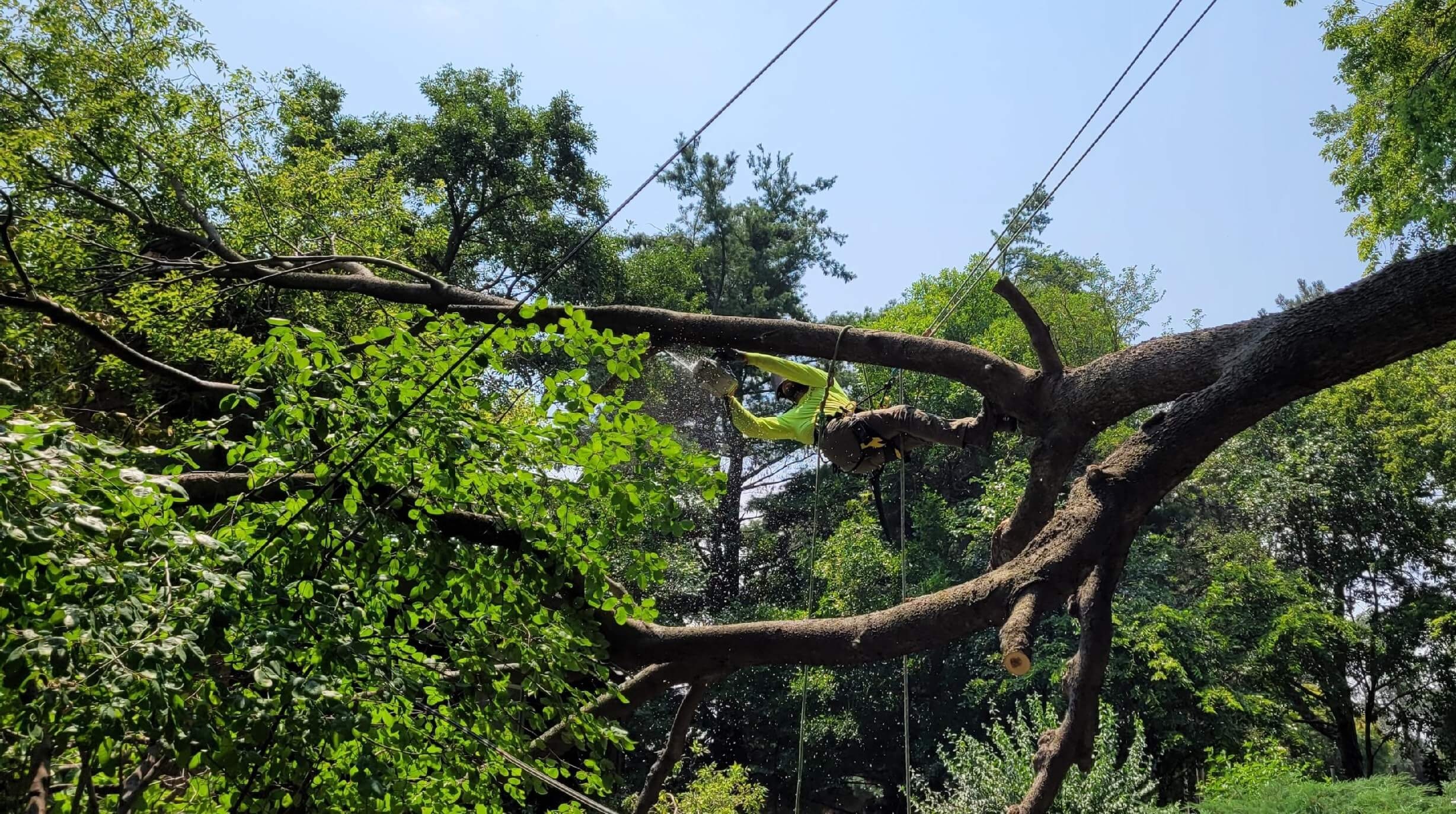 • MTS employee trimming tree